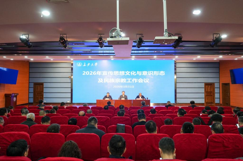 3月31日上午,学校在北校区北辰会议中心二层报告厅召开宣传思想文化与意识形态及民族宗教工作会议。校长李树涛主持会议,校党委书记陈志坚作总结讲话。校党委副书记徐引正安排部署学校2026年宣传思想文化与意识形态及民族宗教工作。