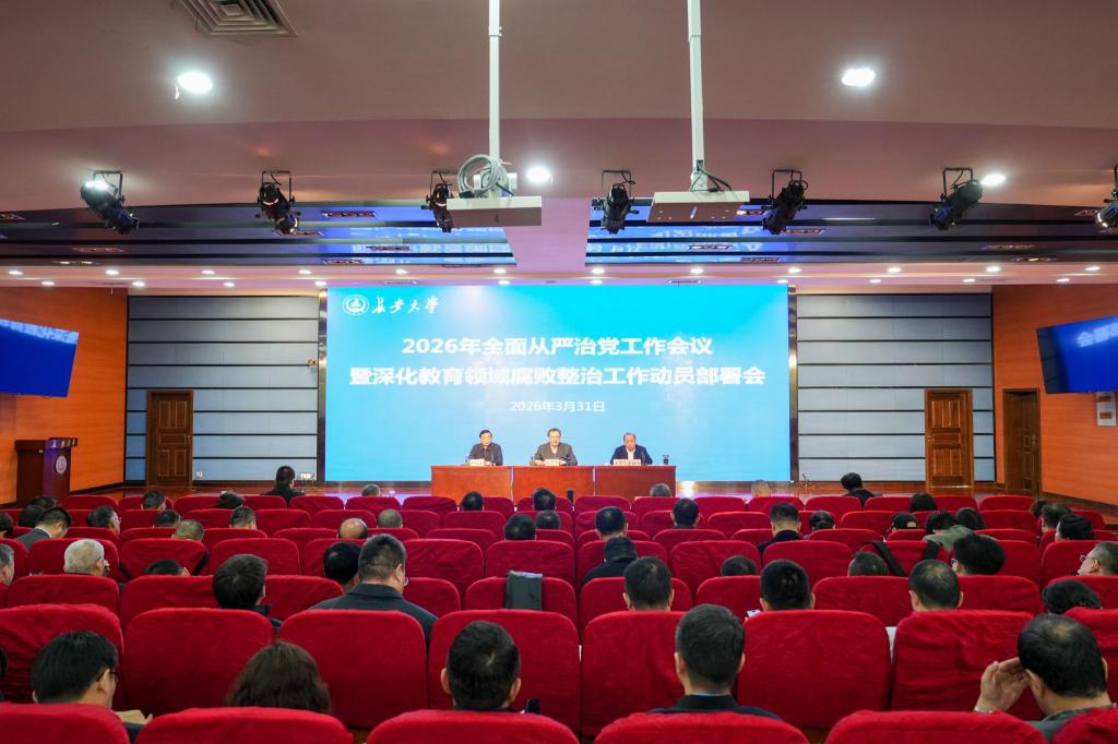 3月31日上午,学校在北校区北辰会议中心二层报告厅召开2026年全面从严治党工作会议暨深化教育领域腐败整治工作动员部署会,贯彻落实党中央有关决策部署和教育部党组工作要求,安排布置学校2026年全面从严治党和深化教育领域腐败整治工作重点任务。校长李树涛主持会议,校党委书记陈志坚作总结讲话。校党委副书记、纪委书记陶继东作安排部署。